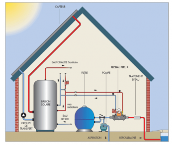 Schéma d'installation d'un échangeur de piscine avec un système de chauffage solaire