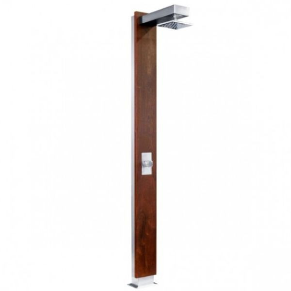 La douche Pluvium combine avec élégance le bois exotique naturel et l’inox satiné AISI 316L, reconnu pour sa durabilité et sa résistance aux agressions extérieures. Elle est idéale pour un usage résidentiel, en bord de piscine ou dans un espace bien-être moderne.