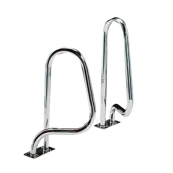 | Jeu de 2 mains courantes avec platines rectangulaires. Ce modèle est stylisé par ses bras croisés. Installation par platines à visser, jeu livré avec joints.