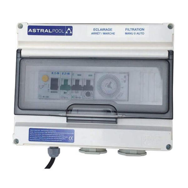 Compact (190 x 240 x 100 mm), il s’adapte parfaitement aux espaces réduits. Il dispose d’un câble secteur avec fiche mâle et de deux prises femelles (dont une dédiée au groupe de filtration). L’utilisateur peut ainsi brancher son système sans connaissances techniques poussées. Un équipement idéal pour les piscines hors-sol équipées d’un groupe de filtration standard.