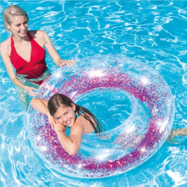 | Des paillettes dans les yeux et dans la bouée avec la bouée tube glitter de la fameuse marque Intex !
