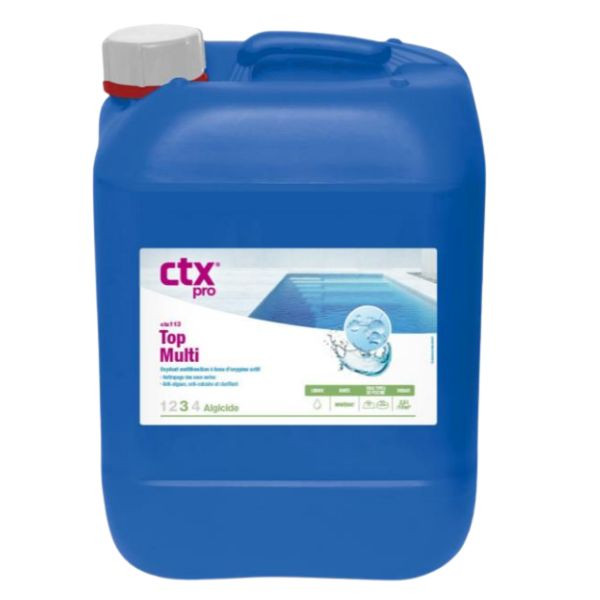 Le CTX 113 Top Multi est un traitement liquide innovant, destiné à désinfecter l’eau de votre piscine tout en éliminant les algues et la turbidité, sans recourir au chlore. À base de peroxyde d’hydrogène, il agit rapidement contre la matière organique et les microorganismes présents dans l’eau, tout en évitant la formation de chloramines irritantes.
